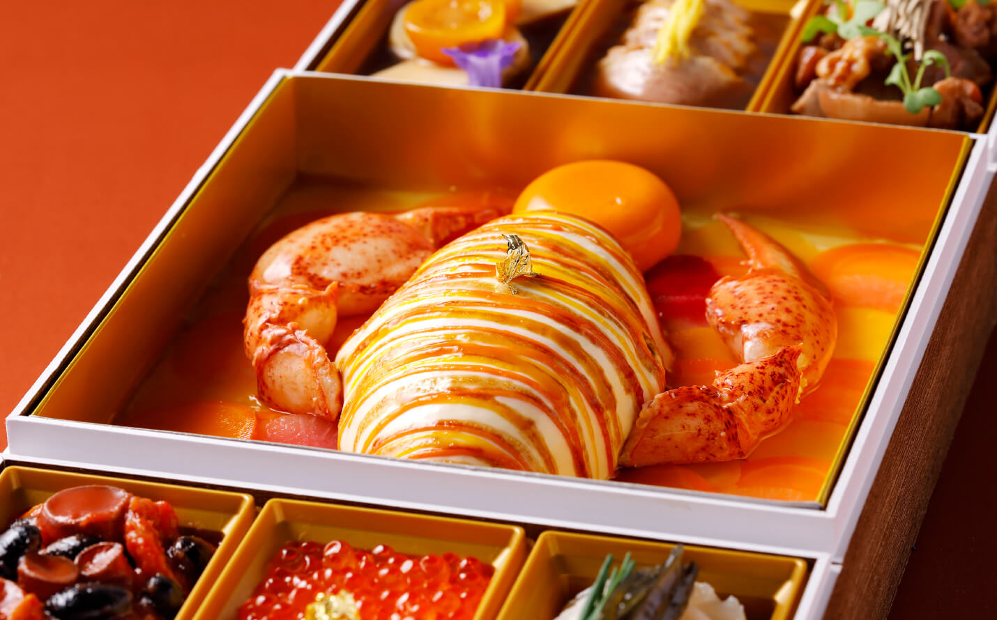 みなさまの新年の幸せを願い、福が重なる四段の重箱に。